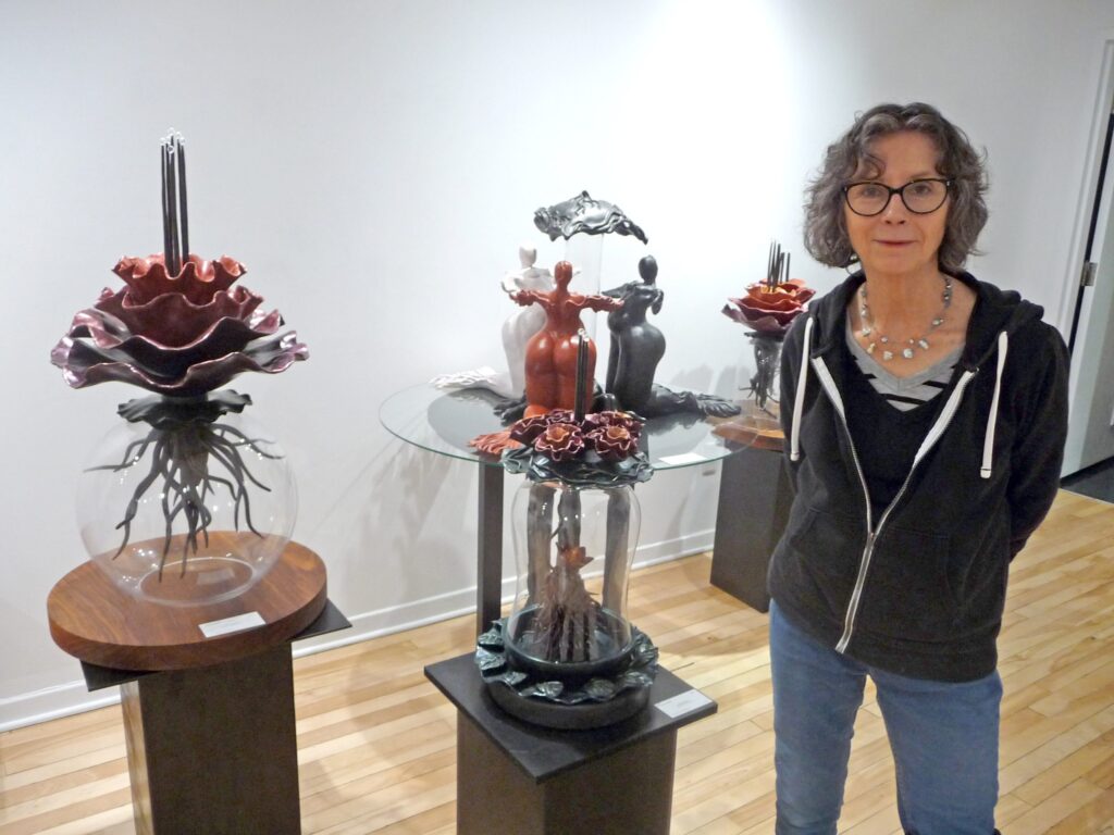 Quatorze œuvres fort imposantes de la sculptrice de Saint-Jérôme séduisent les Lachutois depuis le 3 novembre. Une orchidée dans toute son exubérance dans la forêt, une corneille blanche, la guerrière aux pieds nus, un monumental escargot… sont quelques-unes des sculptures exposées. Pour la plupart, elles ont été réalisées par l’artiste durant les cinq dernières années.