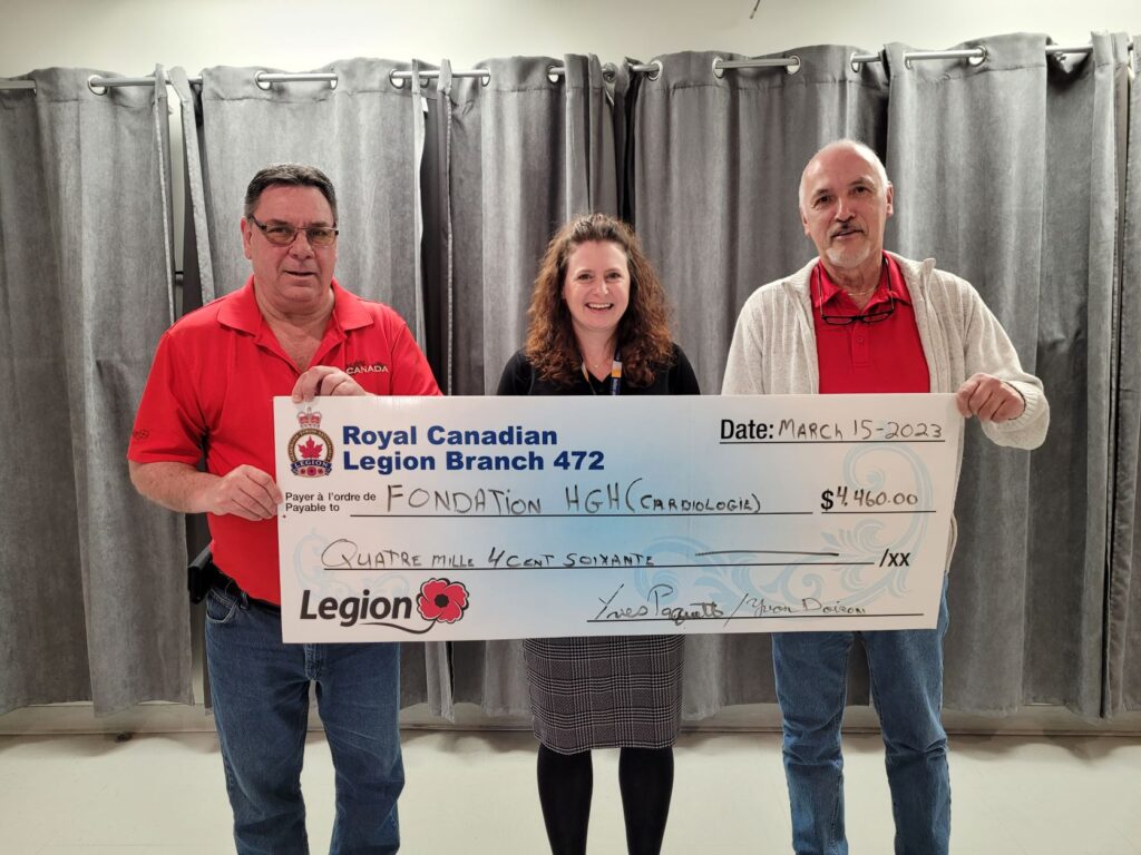 Un chèque de 4460 $, représentant tous les fonds recueillis lors de l’événement, a été présenté aux responsables de la Fondation HGH, le 15 mars à la salle de la Légion.