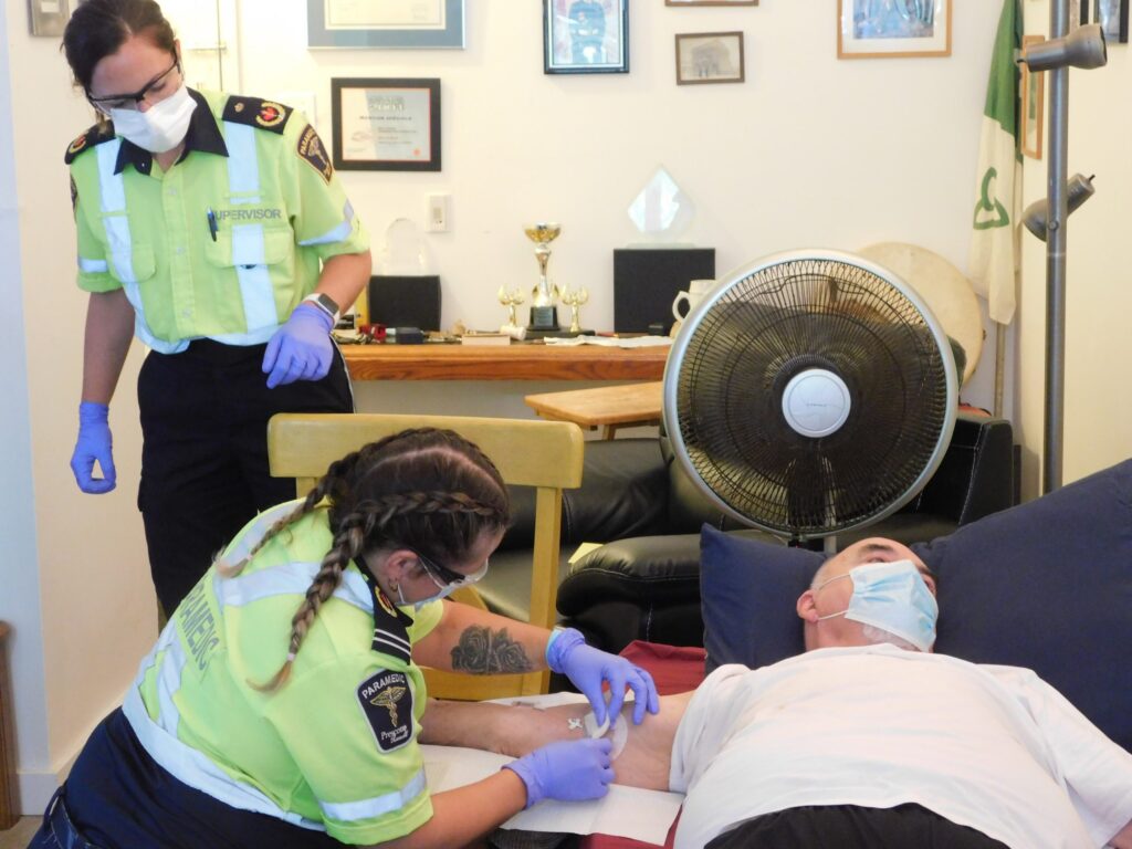 “Les soins que vous recevez à la maison sont une nouvelle procédure qui vient juste d’être mise en place, a déclaré Marc André Périard, le directeur des services d’urgences de Prescott-Russell. Il ajoute que je suis probablement le premier en Ontario à recevoir des soins d’antibiotiques intra-veineux à la maison ainsi que des changements de pansements de techniques aseptiques. Sans être un projet-pilote comme tel, a-t-il ajouté, c’est nouveau et en période d’évaluation pour voir si on peut améliorer des lacunes”.