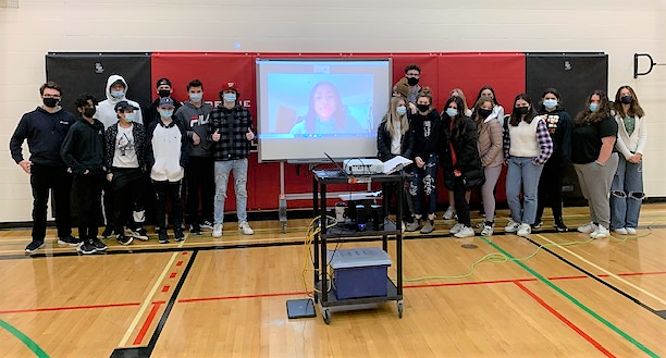 Les élèves de l’Institut collégial de Vankleek Hill se sont entretenus avec la joueuse de football olympique Jayde Riviere, le 29 novembre, par vidéoconférence, depuis son dortoir de l’Université du Michigan, qu’elle fréquente grâce à une bourse d’études de football complète. Elle a parlé de ses débuts en tant que joueuse de football et de ses expériences en tant que membre de l’équipe olympique de football du Canada, qui a remporté l’or aux Jeux olympiques d’été de Tokyo l’année dernière.